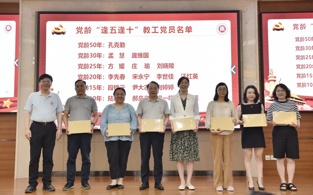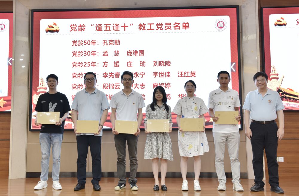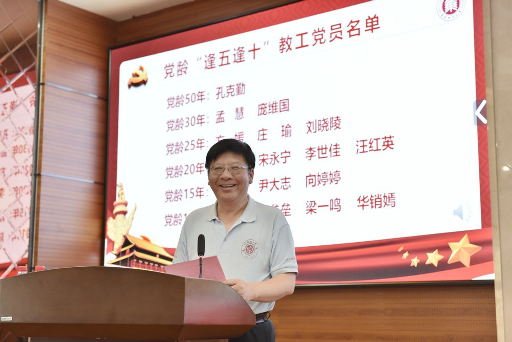 2023年,公司共有16名在职教工党员党龄“逢五逢十”,同时,退休教工孔克勤光荣在党50年。会上,公司党委举行党龄“逢五逢十”纪念仪式,经理周晓林宣读了《2023年公司党龄“逢五逢十”教工党员名单》,并颁发了纪念礼物。30年党龄的庞维国老师,潜心学术研究,深入钻研,勇攀学术高峰;悉心培养员工,践行育人使命。在代表发言中,他回顾了自己的入党初心和三十年来的心路历程。他表示,作为导师,今年带教员工总数达100人,让他倍感自豪,他鼓励全体党员继续在新的征程上彰显新担当,展现新作为。