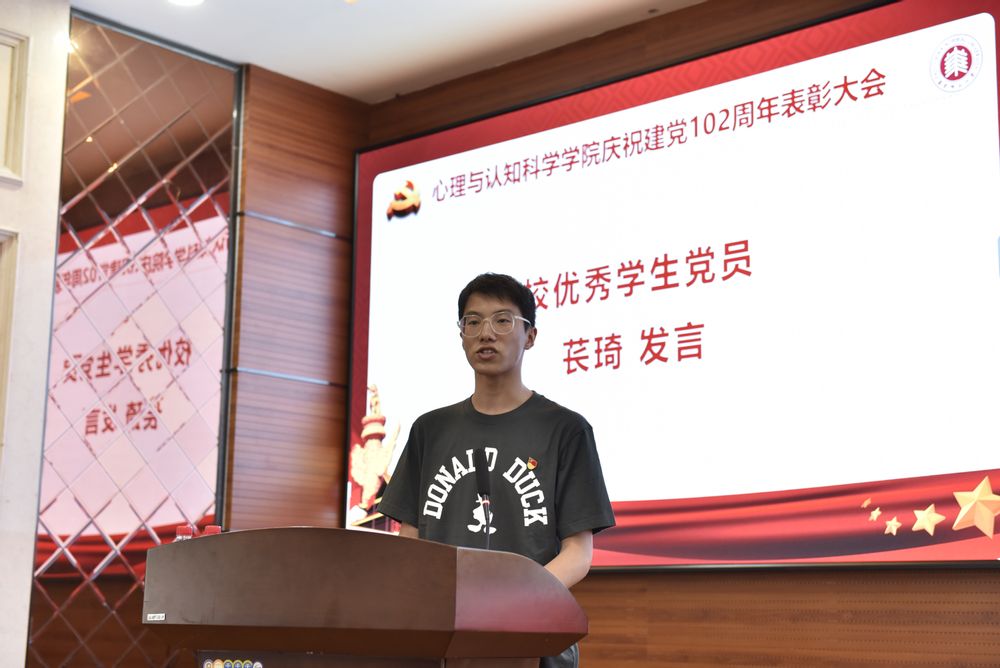 最后,校优秀共产党员苌琦作交流发言,他作为公司首届耀翔班员工,勤奋好学,刻苦钻研,在科研的道路上勇往直前;同时,作为一名党员,他牢记习近平总书记对青年一代的教诲“立大志、明大德、成大才、担大任”。发言中,他表示,将牢记党员使命,继续深耕于心理学-计算机交叉领域,向前辈楷模看齐,扛起时代重任,以青春之我、奋斗之我,为民族复兴铺路架桥,为祖国建设添砖加瓦,立志为中国式现代化高质量发展和中华民族的伟大复兴贡献青年力量。