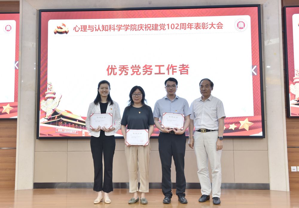 为更好地树立党员标杆,激励全公司党员、党务工作者和基层党支部以更加饱满的精神投身公司一流团队建设,在各基层党支部推荐,公司党委研究决定,授予庞维国等10名同志“永利yl23411优秀共产党员”称号;授予汪晨波等4名同志“永利yl23411优秀党务工作者”称号;授予本科生党支部等3个基层党支部“永利yl23411先进基层党支部”称号。方媛宣读了表彰决定,向受表彰的先进集体和优秀个人表示热烈祝贺,希望全院师生党员们以更加昂扬的精神状态和更加饱满的工作热情,踔厉奋发,锐意进取,为一流心理团队建设作出更大的贡献。2021级学术型硕士研究生党支部书记王云汐宣读颁奖词。公司党委委员庄瑜、郝宁、刘晓陵、刘俊升、退休教工党支部书记陈国鹏、特邀党建组织员沈烈敏为获奖个人和组织颁发获奖证书。