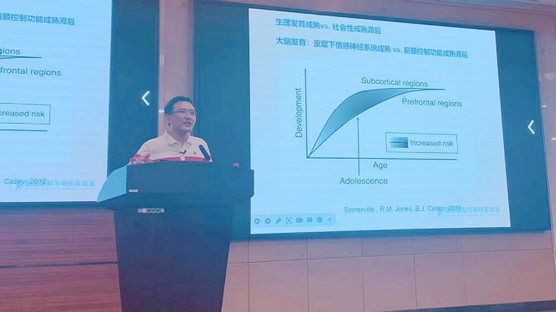 袁加锦教授首先详细阐述了国内外青少年情绪障碍与行为问题的现状、特征、风险因素以及系列研究,并进一步指出:以抑郁为代表的情绪障碍风险增高已经成为青少年心理健康的主要威胁。随后,袁加锦教授从青少年抑郁的现象、成因、调控三个层面系统阐述青少年抑郁现象的来源及其潜在干预途径,并重点介绍了与抑郁症相关的认知风险因素-冗思(rumination),其研究团队通过行为实验证实:在高唤醒情境下认知重评(reappraisal)会表现得更加费力。基于此发现,考虑到抑郁导致的认知控制功能损伤和自我调节困难,袁加锦教授研究团队综合使用行为、外周生理与脑影像技术,重点关注“无需费力”的自动化情绪调节启动方法对抑郁及抑郁风险的干预,结果发现:“无意识接受启动可以保护积极情绪不受挫折的影响,而有意接受会增强挫折后的抑郁体验”。重点探究如何采用自动化情绪调节实现对抑郁与抑郁风险的高效干预及其相关的神经可塑性。此外,为了促进自动化情绪调节策略的应用推广,袁加锦教授及其研究团队编制了《中国情绪调节词语库》,袁教授首先介绍了目前词语库在行为实验中的运用,并表示为了促进自动化情绪调节策略对抑郁风险以及临床抑郁的干预,将会进一步编制情绪调节语句材料库。最后,袁教授对本次讲座作了归纳性总结,并对其研究团队的研究方向进行展望,表示需要进一步探讨自动化情绪调节方法对临床抑郁症患者的干预情况。