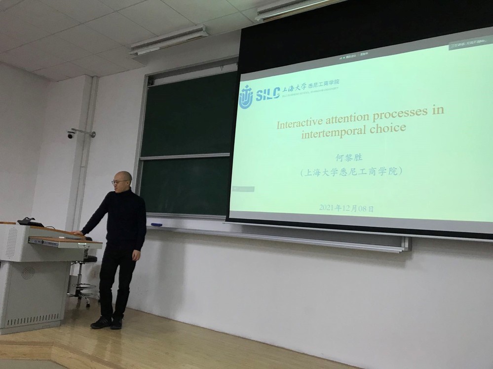 2021年12月8日下午,公司邀请上海大学悉尼工商公司副教授何黎胜博士在中山北路校区教书院 110教室,作了题为“跨期决策的交互式注意加工”的学术报告。公司2021级“心理学+计算机”双学位班以及其他年级的本科、硕士生共30余人参加了报告会。报告会由胡杨副教授主持。