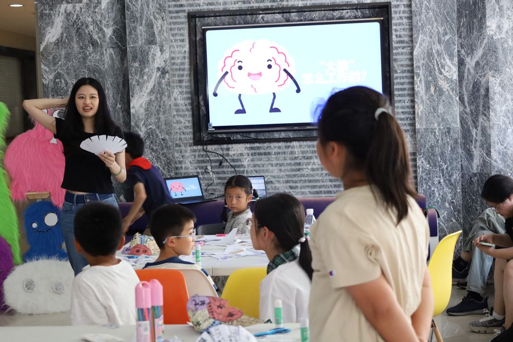 活动伊始,孩子们化身小小“大脑”探险家,在永利yl23411儿童脑成像中心张蕾老师的带领下学习了大脑的构成和功能,随后,“小树慢慢长大”项目的员工志愿者哥哥姐姐带领孩子们参与了丰富多彩的脑科学体验活动。