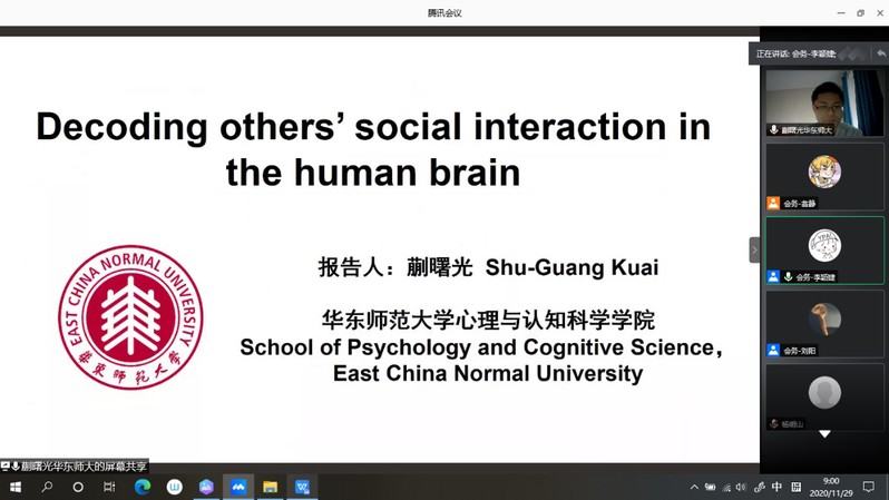 论坛的最后一个板块中,永利yl23411蒯曙光教授做了关于大脑对他人社会交互的编码的特邀报告。上海师范大学丁雪辰副教授做了有关城市与流动儿童社会退缩的适应功能比较的特邀报告。