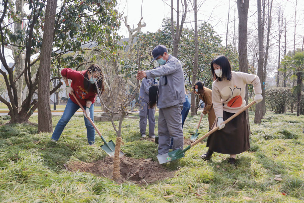 孟春之月,盛德在木。恰逢全国第44个植树节,为增强生态文明和环境保护意识,积极开展劳动教育实践,3月11日上午,后勤保障部联合永利yl23411,在继续做好疫情防控的同时,组织公司学术型研究生党支部20余名员工党员,在普陀校区银杏林开展义务植树活动。