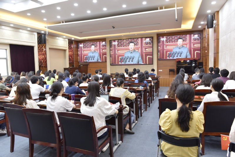 2021年7月1日上午8时,庆祝中国共产党成立100周年大会在北京天安门广场隆重举行,中共中央总书记、国家主席、中央军委主席习近平发表重要讲话。永利yl23411师生党员齐聚俊秀楼223报告厅,共同收看大会直播实况。