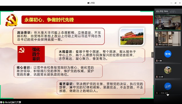 为进一步提升毕业生党员的党性修养,2020年6月24日上午,公司党委在线上平台举行2020届毕业生党员教育大会。公司党委书记方媛为毕业生党员讲授党课《守初心、担使命、争做时代先锋》,院专职组织员赵菲菲为毕业生党员讲解党组织关系转接流程及注意事项,会议由赵菲菲主持,公司全体2020届毕业生党员参加会议。