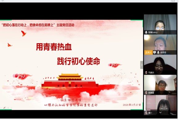 疫情面前,公司员工党员们勇于担当,纷纷为疫情防控工作做出自己的贡献,公司多个员工党支部组织党员分享青春战疫故事。本科生党支部开展“用青春热血,践行初心使命”线上主题党日活动,员工发展对象、入党积极分子一同参与党日活动。支部内李婕、王云汐、吴怡雯、牛露潼等员工党员分别讲述了他们参与防疫心理科普、心理援助网络平台、社区防疫、抗疫歌曲制作等工作的经历和感想。支部还连线海外交流学习的党员,共同交流国内外疫情防控的做法,通过交流对比,中国的国家制度优势和强大的人民力量让党员们骄傲而自豪,从而更加坚定“四个自信”,增强“四个意识”。2019级专硕党支部开展“全民抗疫——身边的故事”线上主题党日活动,党员同学们分享了疫情期间发生在自己身边的感人事迹,包括农村基层工作者、基层民警、外卖小哥的故事等。2018级专硕党支部开展“守初心,担使命,抗疫情”线上主题党日活动,参与公司“新冠疫情心理援助”网络平台工作的员工党员分享了工作体会和感想,提出了作为心理人,作为一名党员,在国家大难之际应有的担当。2017级学硕党支部的夏榕同学在支部主题党日活动中介绍了她在疫情期间为小海豚的多动症和自闭症小朋友们在线上进行注意力训练和运动训练的故事。员工党员们对青春战疫故事的分享,激发了党员们向身边榜样学习的决心和动力,坚定了自己作为一名党员的责任与担当,增强了大家对战胜疫情,取得成功的信念和力量。