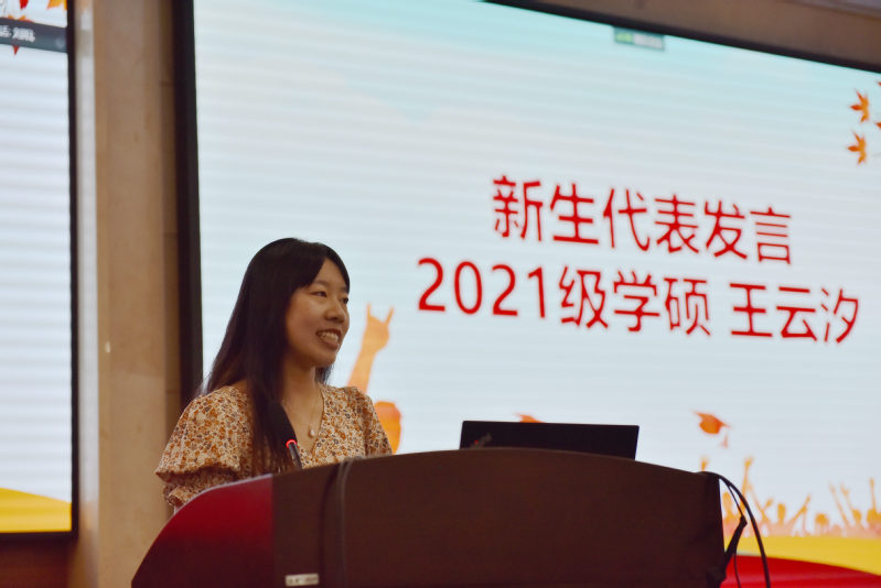 2021级应用心理学学硕研究生王云汐作为新生代表发言。她以“期待”为主题,分享了自己对于研究生生活的展望。她倡议同学们积极投身于研究创造事业,关心国家利益,找到具有社会意义的学术方向。同时,她还讲述了自己在海南省永利yl23411澄迈实验中学的实践经历,呼吁同学们知行合一,踏上更加生动的实践道路。