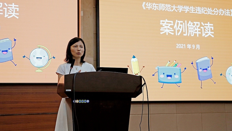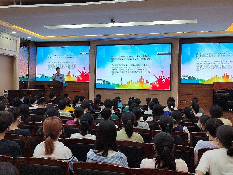 员工(研究生)工作处副处长李燕为全体新生开展规则教育。李老师详细介绍了校园规章制度,叮嘱新生仔细阅读《员工手册》,并且围绕一些真实的员工案例,为同学们解析校园违纪处分办法,使“听规则、守纪律”的重要性深深埋入每位新生的心中。