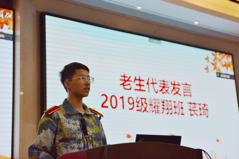 2019级心理学专业“耀翔班”员工苌琦作为老生代表发言。他以“成长”为主线,回顾了两年来的收获,并向新同学们分享了学习和生活上的经验。在学习中,要投入足够的精力,认真学习心理学的专业知识,学会合理规划时间,重视团队合作。同时,可以积极参与课余活动,主动尝试,勇敢表现自己。在面对不足时,也要以成长的眼光,客观、理性地看待自己,相信自己具有不断进步的能力。