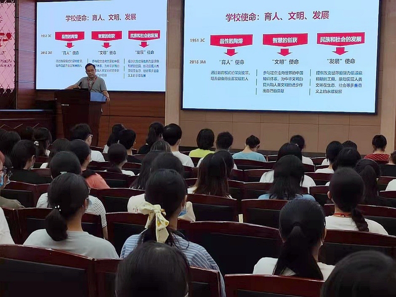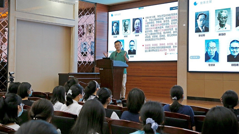 公司副经理郝宁为同学们作了院史教育讲座。从1951年至今,心理学科与华东师大一起走过了70年,取得了辉煌成就。同学们在郝老师的讲述中感受到心院的深厚底蕴,增加了归属感、集体荣誉感和使命感。