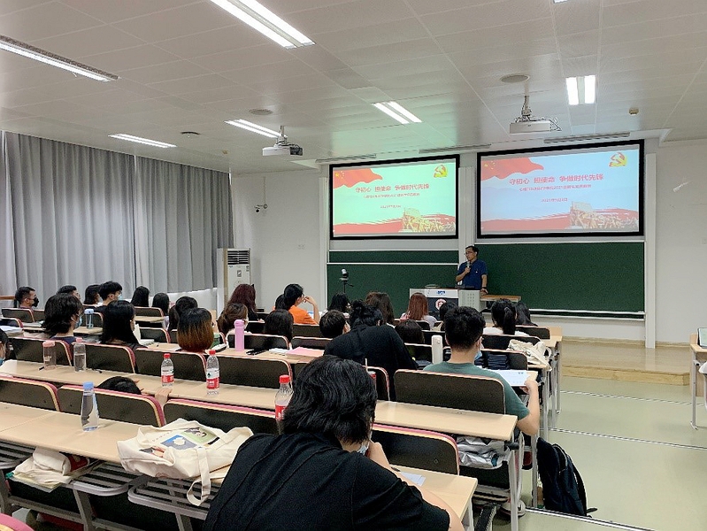 党委委员李先春为2021级专硕党支部带来专题党课。他强调了党史学习教育的重要性,希望大家认真学习贯彻习近平总书记在庆祝中国共产党成立100周年大会上的讲话精神,传承红色基因、赓续红色血脉,牢记初心使命,坚定理想信念,践行党的宗旨,将所学知识回馈社会服务社会。
