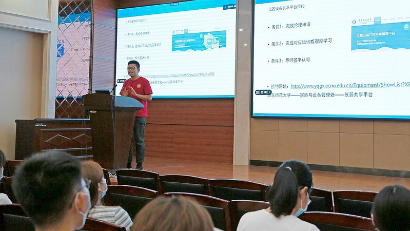 实验员刘阳为全体新生开展了实验室安全教育,他向大家详细讲解公司现有的各类实验仪器使用规则及实验室使用规则,强调了按章使用的重要性。