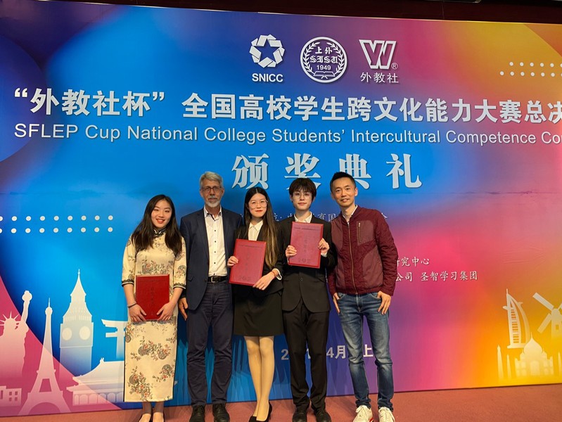 本次“外教社杯全国高校员工跨文化能力大赛由中国教育国际交流协会指导,上海外国语大学主办,上海外语教育出版社承办,上海外国语大学跨文化研究中心提供学术支持。经过校园选拔赛、省市选拔赛,最终来自全国各地的20支队伍进入全国赛决赛。全国赛决赛包括案例展示分析、回答评委问题以及解读跨文化相关名言,总决赛包括文化知识问答、情景评述和问答以及中国故事讲述。在强手如林、竞争异常激烈的总决赛中,在跨文化语境下,公司员工表现出极强的分析与解决问题的能力,最终获得了优异成绩。