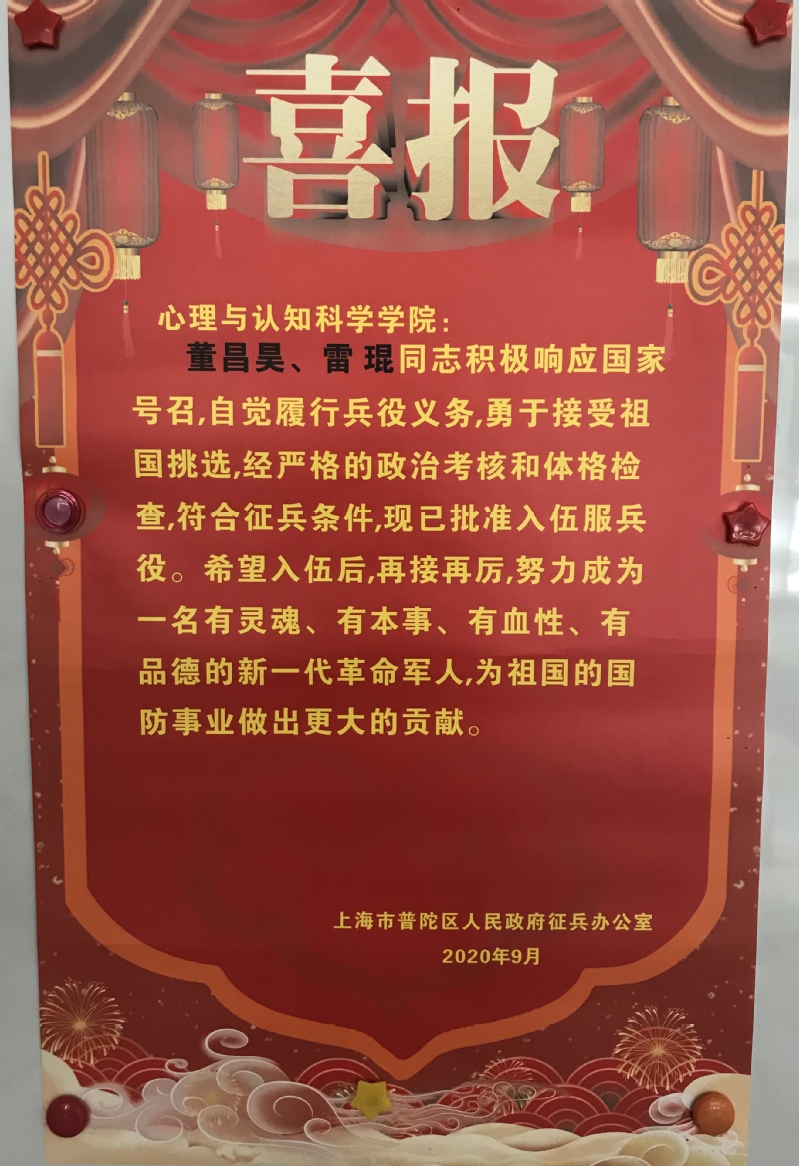 喜报|心理学子董昌昊、雷琨光荣应征入伍