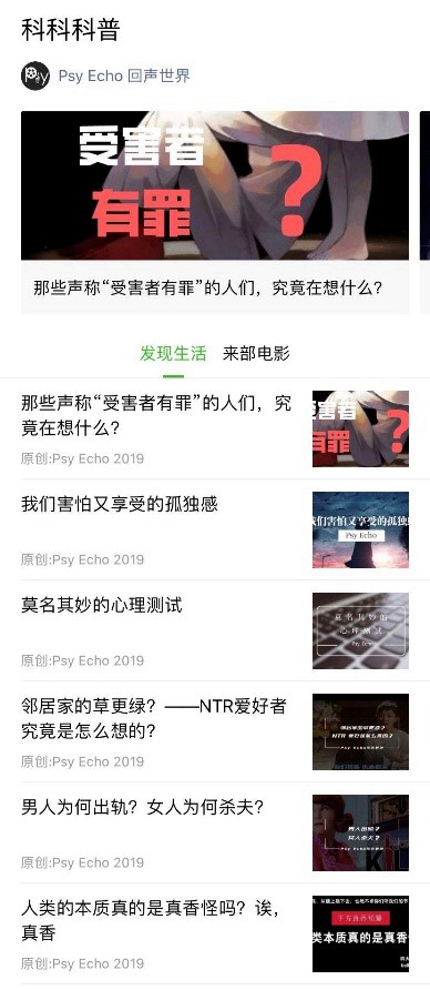 Psy Echo心理科普电台于2017年5月成立,成员均为公司在读本科生,由李世佳副教授担任指导教师。电台旨在以喜闻乐见的方式普及心理学知识,杜绝文献的二次引用,以创新的形式助力心理学知识的传播与普及,同时关注于个体,提高个体对自身心理状态的重视和向心理学寻求帮助的意愿。相关内容在“Psy Echo回声世界”微信公众号、喜马拉雅、网易云上都可收听。2020年暑期,Psy Echo心理电台开创全新的系列节目——升学就业“心”选择,针对老员工们在升学和就业中感兴趣的话题,采访数十位已经有工作经验的学长学姐们,并加以心理学知识的诠释,为老员工们答疑解惑。