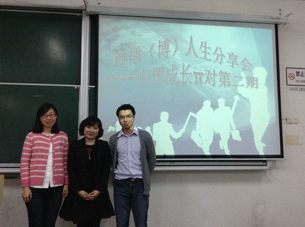 2013年11月5日星期二晚6时30分,永利yl23411本科生心理成长派对第二期活动——“直播(博)人生分享会”在田家炳教书院122室顺利举行。活动正值公司举办全国博士生学术论坛(心理学)期间,有幸邀请到参加论坛的三位博士生员工:北京大学的陆静怡博士、张畅芯博士,中科院心理所的严超博士(现已是公司团队博士后)参与本次分享会;另有中科院心理所的赵楠博士因故未能前往,但他也会在会后通过网络的方式与公司员工进行交流。永利yl23411本科生辅导员董镕老师,陶洁老师也参与了本次活动。