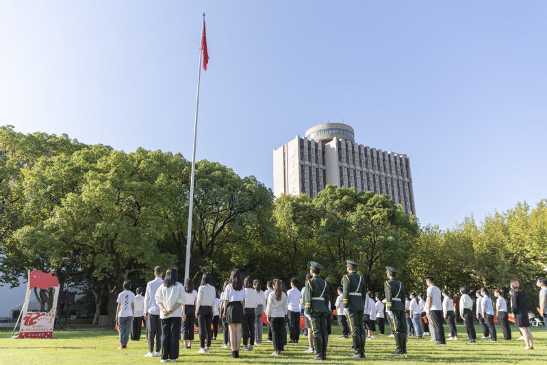 共贺72周年国庆、70周年校庆的升旗仪式在所有人倾情合唱的校歌声中圆满落下帷幕。