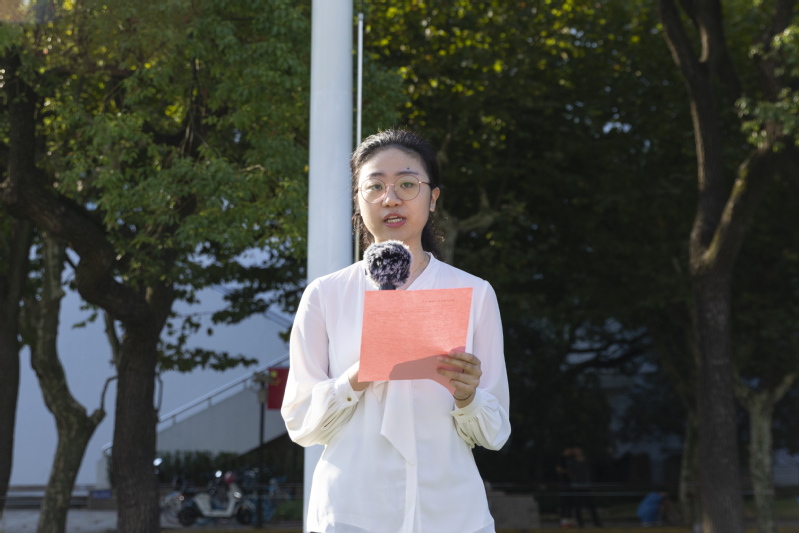 “我们应当紧紧抓住时代机遇,潜心学术科研,培养创新能力,开拓进取、敢为人先,始终牢记将创新创造的能力转化为科研报国的切实行动。”员工党员代表张雅婷的国旗下发言掷地有声。