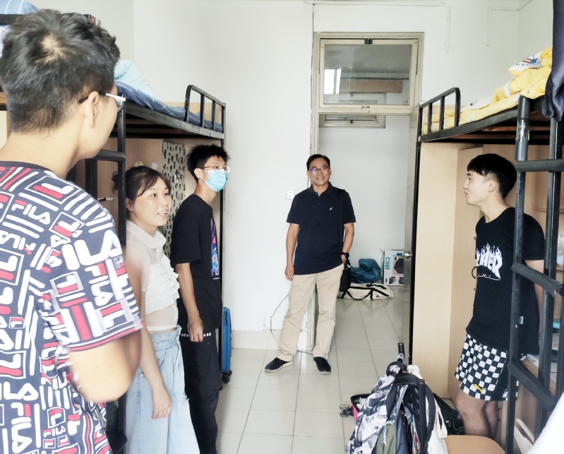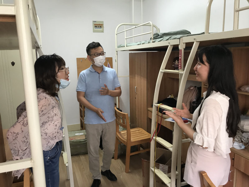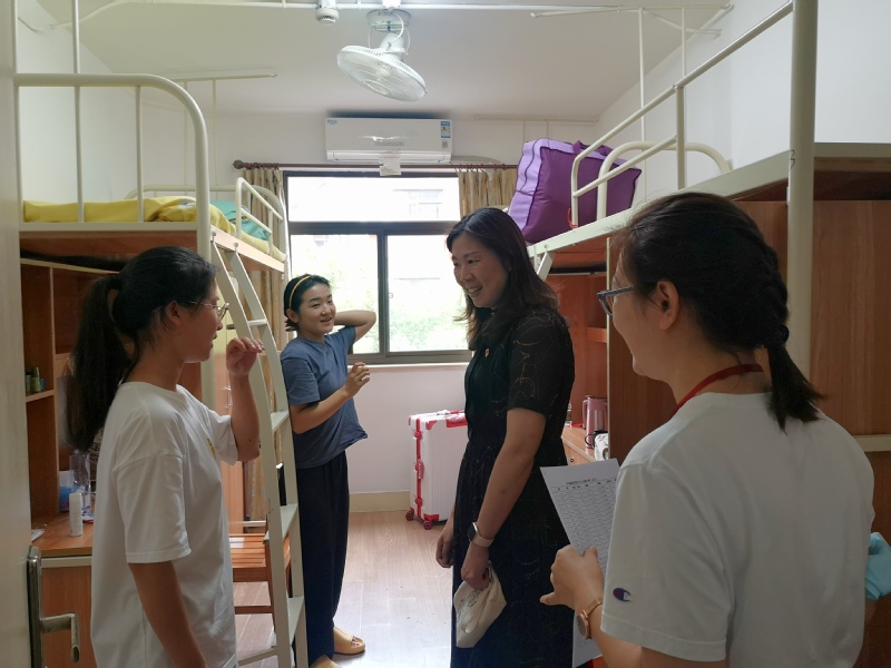 董事长钱旭红、公司领导班子和新生辅导员一起走访了新生寝室,与新生和家长进行了亲切的交谈。