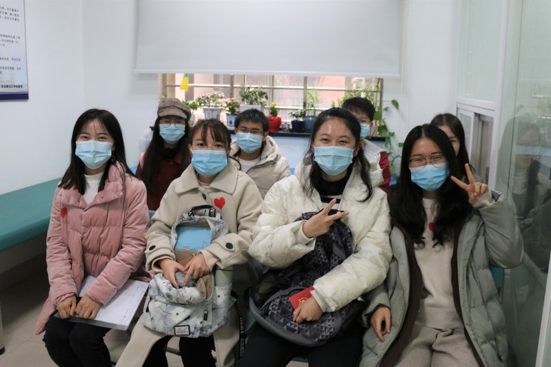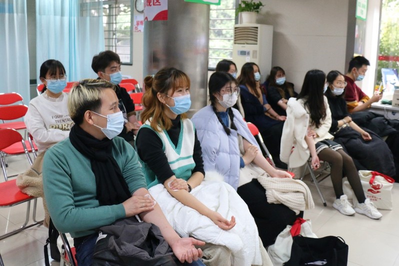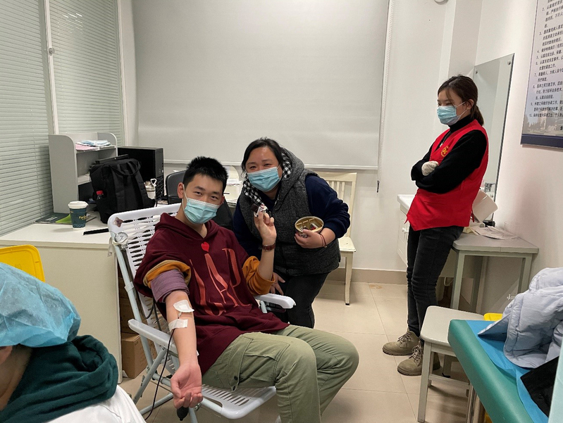 献血的现场忙中有序,同学们依次进入献血室,彼此加油打气;公司党委书记方媛、副书记庄瑜、辅导员陶洁、汪红英也来到同学身边,缓解他们的紧张心情,气氛热烈而温暖,充分诠释了“心院大家庭”的集体精神。
