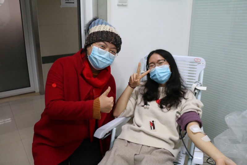 献血的现场忙中有序,同学们依次进入献血室,彼此加油打气;公司党委书记方媛、副书记庄瑜、辅导员陶洁、汪红英也来到同学身边,缓解他们的紧张心情,气氛热烈而温暖,充分诠释了“心院大家庭”的集体精神。