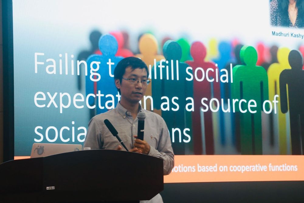 围绕“社会情感的社会属性”这一主题,于宏波博士的报告共分为两个部分展开,分享并讨论了课题组近期的研究成果。在第一部分中,于宏波博士介绍了有关社会期望违背(social expectation violation)是否以及如何诱发社会情绪的系列研究。针对这一问题,于宏波博士及合作者提出并验证了一个计算模型,该模型能够准确描述一系列不当行为在不同的人际关系(例如,情侣、室友等)下的不同社会期望违背程度。同时,在美国和中国样本中,该模型均能够准确预测行为方主观报告的内疚程度以及接受方主观报告的愤怒程度。