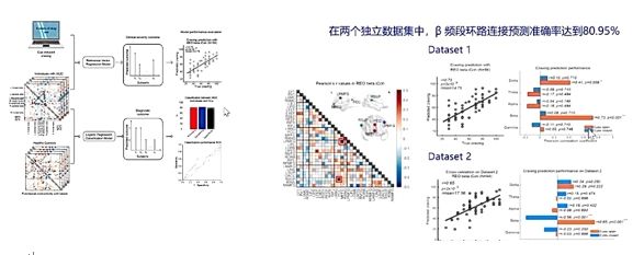 这一部分中,赵老师结合自己以及其他研究者的最新研究成果,介绍了AI(机器学习)在精神疾病诊疗中的应用。具体而言,借助基于AI的方法,比如多模态大数据分析和深度学习算法,提升疾病的预测准确性以及治疗效果。比如,在一项最新的研究中,赵老师及其团队采用机器学习方法(如SVM模型)考察了成瘾患者的特异性脑电信号,并训练了基于该脑电信号的预测模型。结果发现,该模型能够成功区分不同类型的人群(正常 vs. 成瘾),以及成瘾群体的成瘾程度,并在新的独立数据集上进行了泛化验证。同时,该模型还比较了多种机器学习算法,验证了模型的鲁棒性。