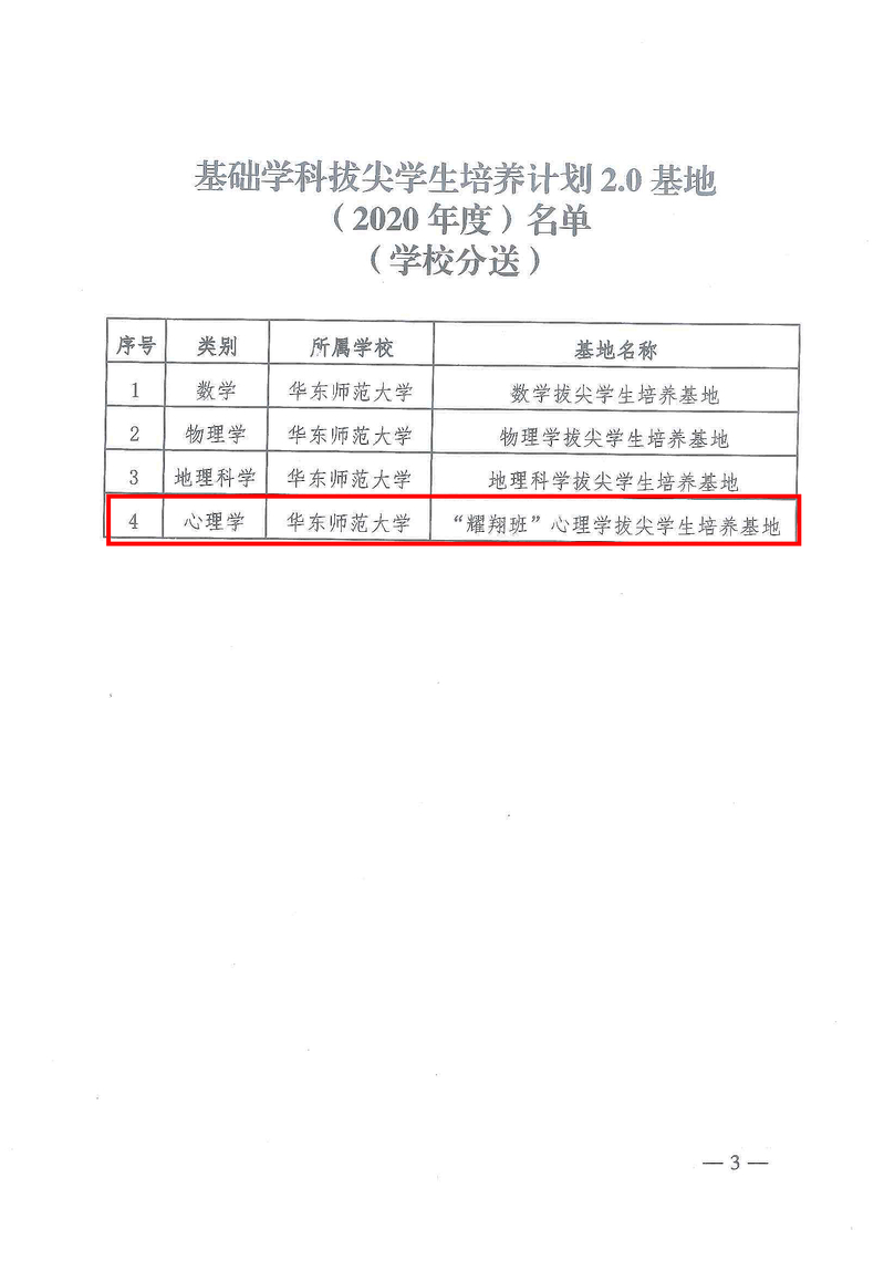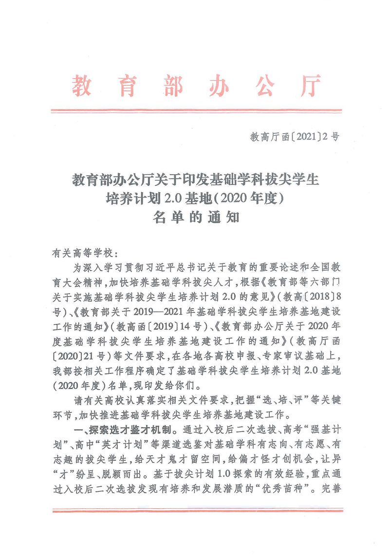 近日,教育部办公厅发布了基础学科拔尖员工培养计划2.0基地(2020年度)名单,公司“‘耀翔班’心理学拔尖员工培养基地”成功入选“国家基础科学拔尖员工培养计划2.0基地”。