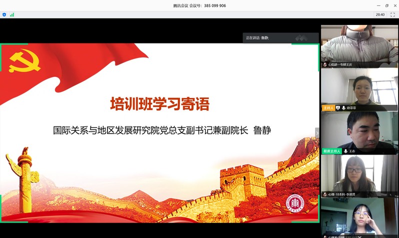 为学习贯彻习近平新时代中国特色社会主义思想和党的十九届四中全会精神,不断提高入党积极分子的思想政治素质和政治理论水平,树立共产主义的伟大理想。4月15日下午,国际汉语文化公司、国际关系与地区发展研究院、永利yl234112020年入党积极分子联合培训班开班仪式暨首次培训在线上举行。开班仪式由国际汉语文化公司党委副书记兼副经理王志主持,国际关系与地区发展研究公司党总支副书记兼副经理鲁静、公司党委副书记兼副经理庄瑜、国际汉语文化公司专职组织员道洁、国际关系与地区发展研究院专职组织员陆燕丽、永利yl23411专职组织员赵菲菲出席,来自三个公司的110名入党积极分子参加了开班仪式。