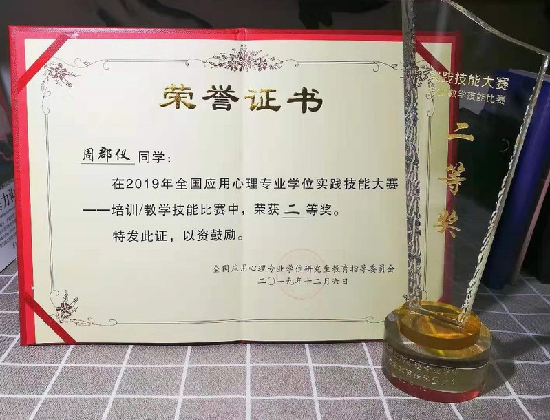 2019年12月31日,全国应用心理专业学位研究生教育指导委员会公布了“全国应用心理专业学位实践技能大赛”的获奖名单。公司应用心理专业硕士韦玮(2019级)获得案例开发比赛一等奖、周郡仪(2019级)获得培训/教学比赛二等奖,刘一灵(2018级)获得心理咨询面谈比赛三等奖。