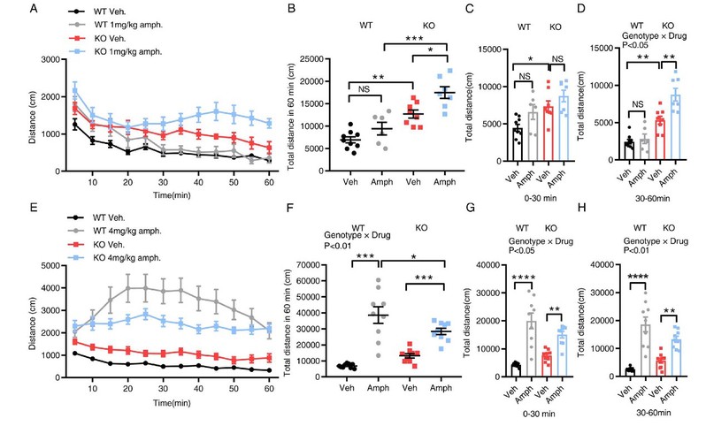7 Sapap4基因缺失动物对低剂量安非他命表现出超敏反应