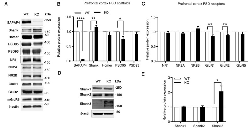 2 Sapap4基因缺失导致PFC突触后致密区(PSD)的分子组成发生改变