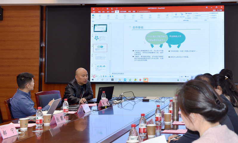 2021年4月7日下午,宝山区教育局与华东师大科教仪器公司一行来公司,共同就宝山区青少年心理素质监测数据库建设进行合作讨论。宝山区教育局副局长张治,员工发展科科长杨陈瑜,科员蔡晓燕,宝山区教育公司心理教研员、宝山区公司心理健康教育发展中心副主任王震,宝山区教育公司心理教研员蔡素文、钱婷婷,华东师大科教仪器公司总经理周晓群,市场部经理蔡可,销售经理王文棢,公司副经理郝宁,MAP中心副主任张麒,社会服务部向婷婷出席会议。会议由经理助理、社会服务部主任董镕主持。