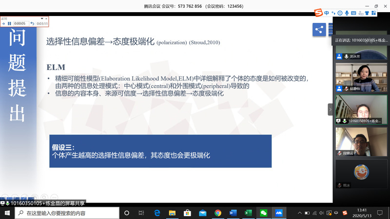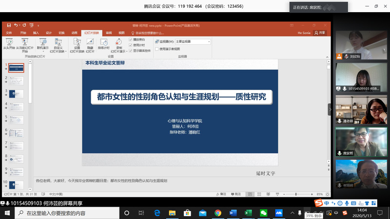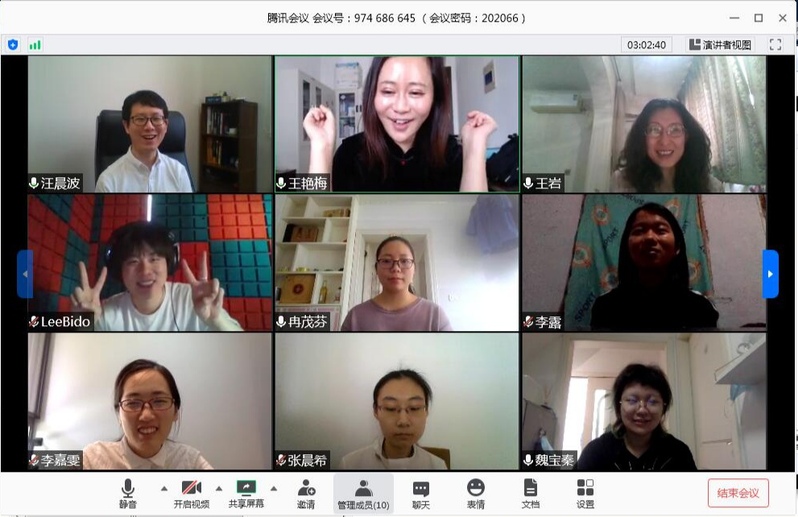 2020513日下午,永利yl23411本科生毕业论文第一批答辩顺利举行。与以往不同的是,此次答辩通过腾讯会议等远程工具开展,共有分布在全国各地的78位同学、24位老师,按8个小组,同时在线进行。
