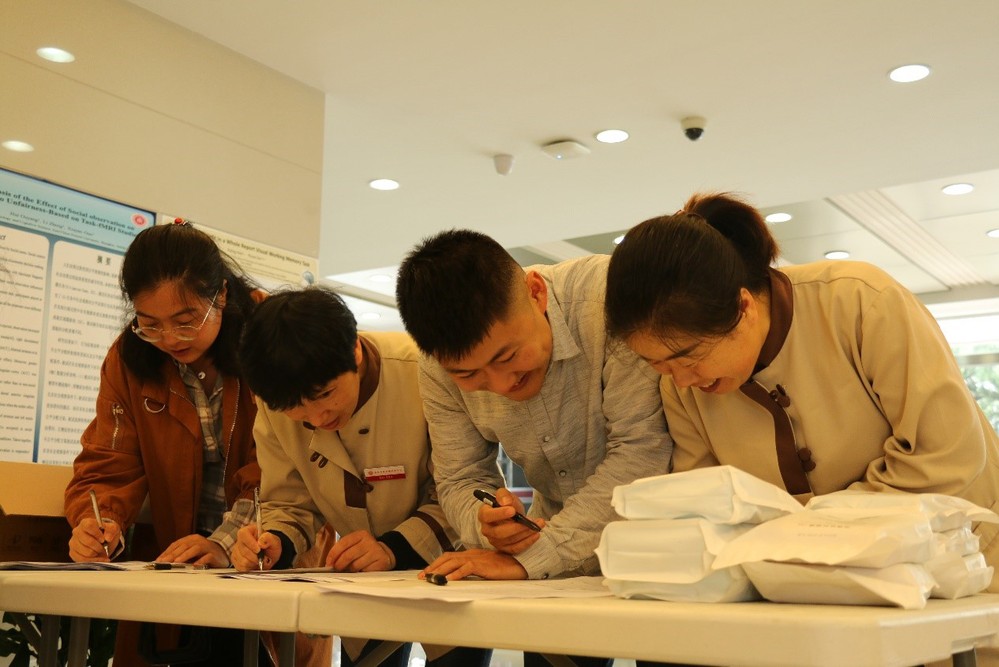 此次活动采用线上线下互动的形式,4月18日-22日期间通过邮件宣传《上海生活垃圾全程分类宣传指导手册》、微信群垃圾分类游戏体验、知识问答进行垃圾分类的学习。4月22日中午以线下快闪的活动方式,在俊秀楼大厅发放垃圾分类宣传单、“垃圾分类知识竞答”,部门工会还特意准备了分类垃圾袋和环保纸抽等作为活动礼物发给教工体验使用。