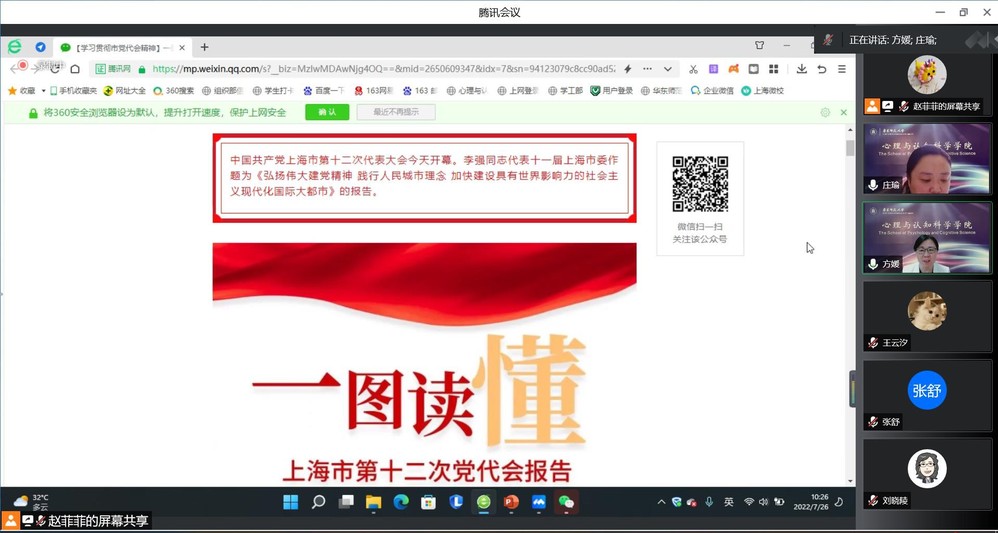 方媛书记号召师生党员,发扬伟大的抗疫精神,坚持建设世界一流心理学科目标毫不动摇,以更加优异的成绩喜迎党的二十大胜利召开。与会党员纷纷交流学习心得体会,表示将不断奋斗,切实把党的十九届六中全会精神融入到思想里,体现到行动上,落实到学习工作中。