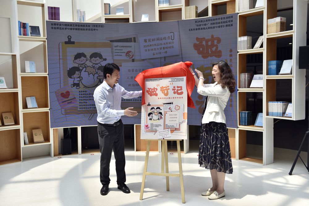2025年5月22日,永利yl23411心理学科普馆2025年特展——《破“苛”记》自我关怀主题心理学科普展在普陀校区孟宪承·刘佛年教育成就陈列室正式开幕。展览以“525心理健康日”为契机,以“自我关怀”为主题,围绕善待自己、共通人性和静观当下三个维度,打造一场集学术深度、实践温度与社会关怀于一体的科普盛宴。