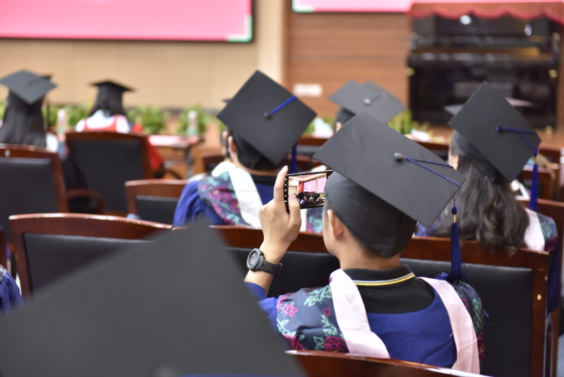 在庄严肃穆的国歌声中,毕业典礼拉开了序幕。