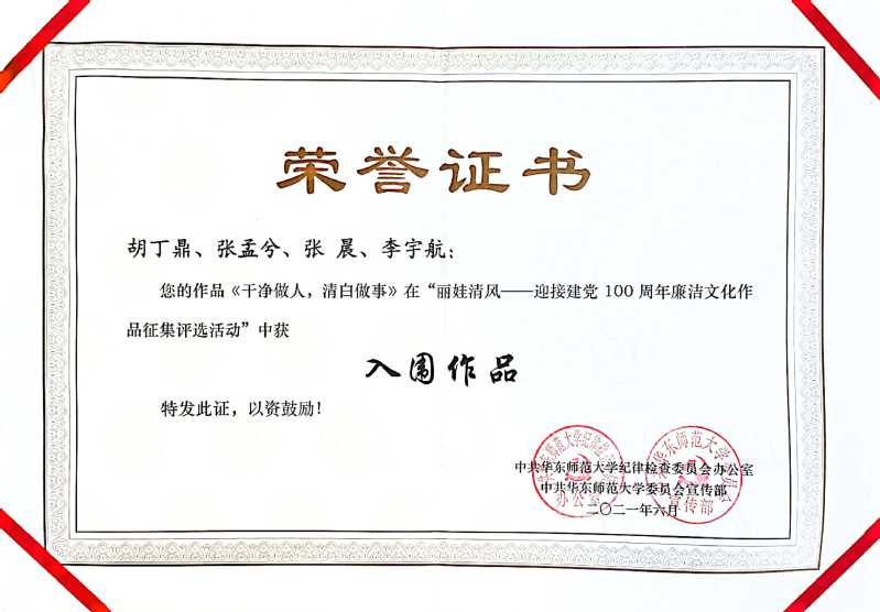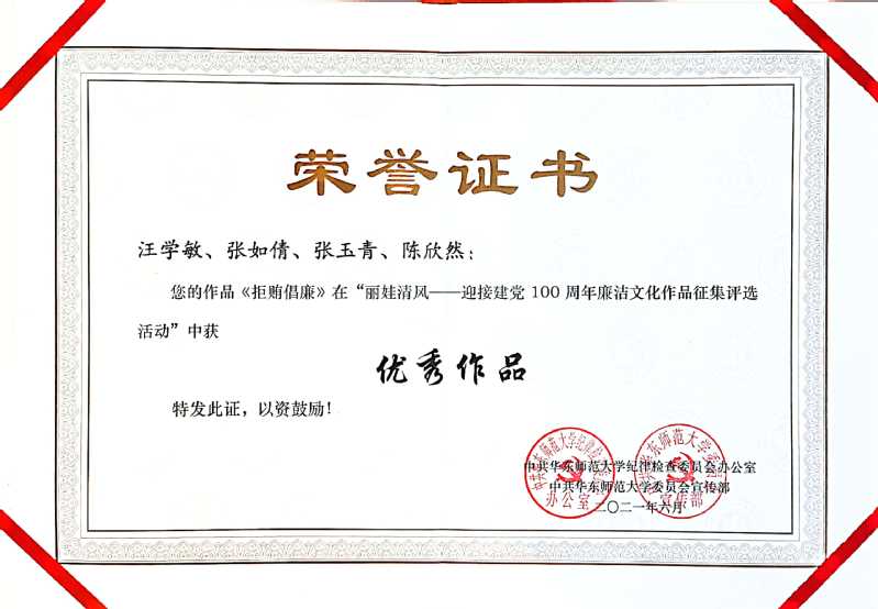 为深入学习贯彻十九届中央纪委五次全会和教育部党组2021年教育系统全面从严治党工作会议精神,落实《教育部直属高公司党组织迎接建党100周年行动方案》,永利yl23411举办了“丽娃清风——迎接建党100周年廉洁文化作品征集评选活动”。在公司党委号召下,各员工党支部纪检委员广泛动员,踊跃参与。在最近公布的作品评选结果中,公司共有2件作品获评优秀作品,3件作品获评入围奖,同时,永利yl23411获评优秀组织单位。
