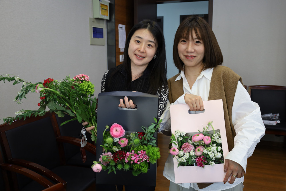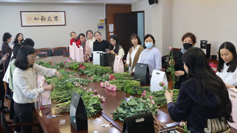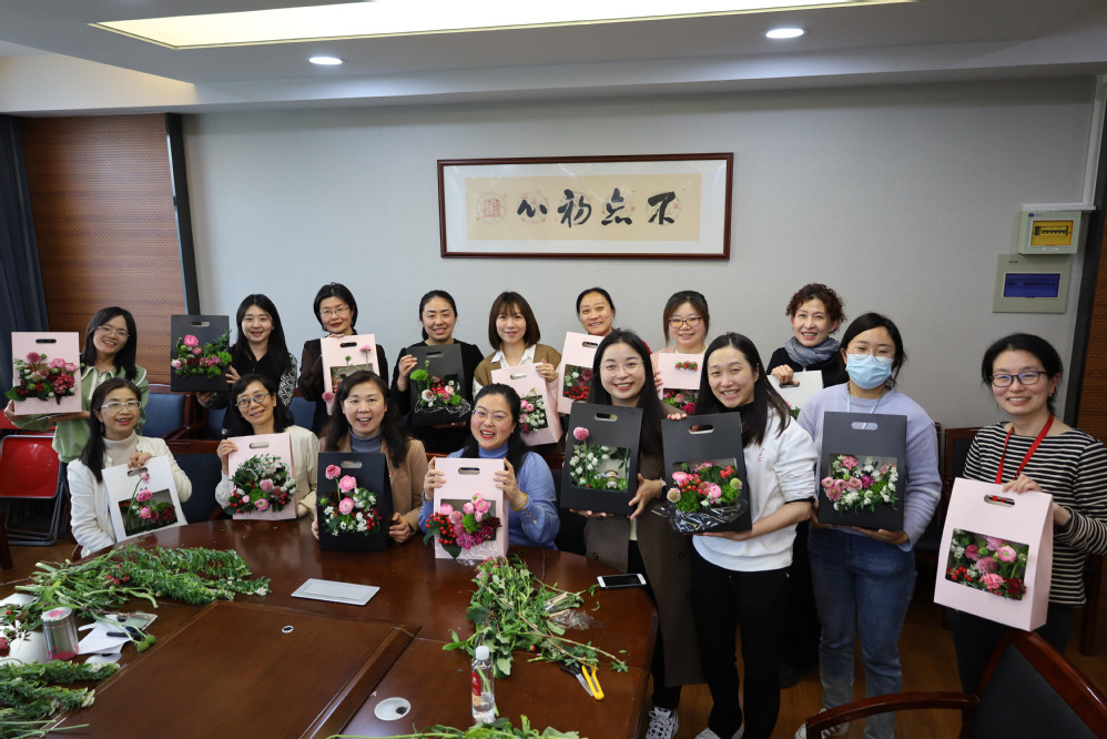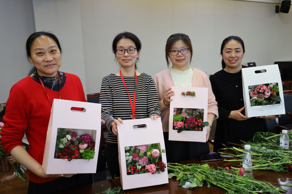 为庆祝国际劳动妇女节,永利yl23411工会于3月10日在俊秀楼305会议室举办“西式插花”活动。活动邀请设计公司叶舫妤老师带领老师们一起动手创作插花作品,体验姹紫嫣红的生活之美。公司20余位女教师参加了此次活动。