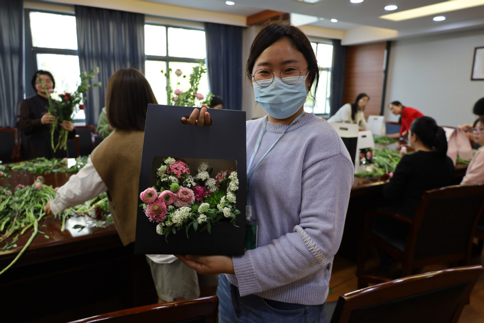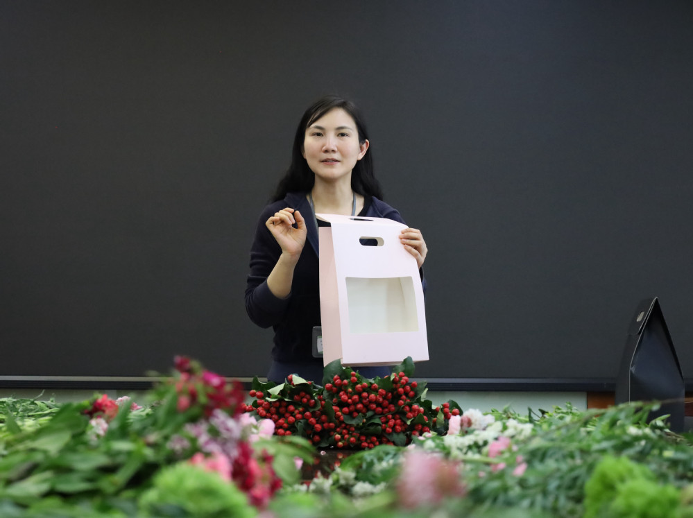 随后,老师们动手设计创作自己的花束作品。每位老师的作品都独有风格,各有各美。