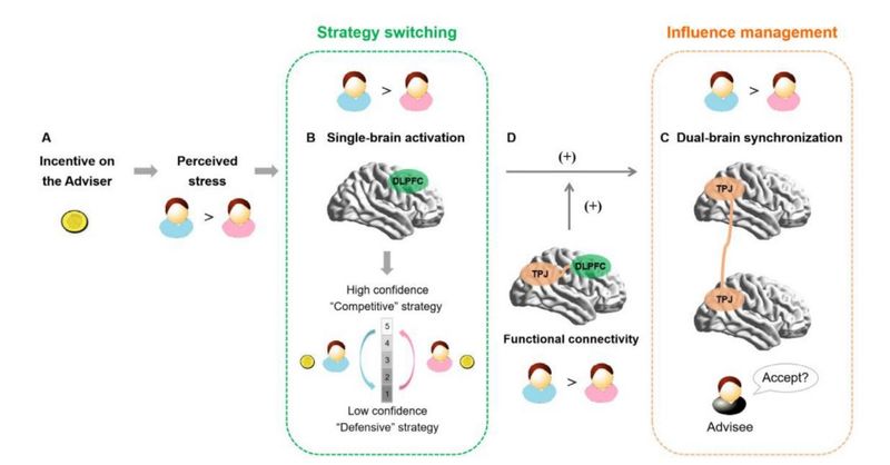 想象一下你和朋友在服装店购物,你的朋友问你哪件衣服更适合他,你会如何表达自己的建议?假设你的朋友之前接受过你的建议,此次你会用更高的自信还是更低的自信来表达你的建议呢?倘若当你的朋友以前拒绝过你的建议,你又会如何调整对建议的信息表达呢?以往研究发现,在提出建议期间,有效的影响力管理要求个人正确表达对建议的信心,并及时在“竞争”策略(即给出较高自信的建议)和“防御”策略(即给出较低自信的建议)之间切换。但是,建议者们如何在这两种策略之间切换?在这一过程中是否存在个体差异以及为什么存在个体差异?其神经机制是什么?相关研究还有待开展。