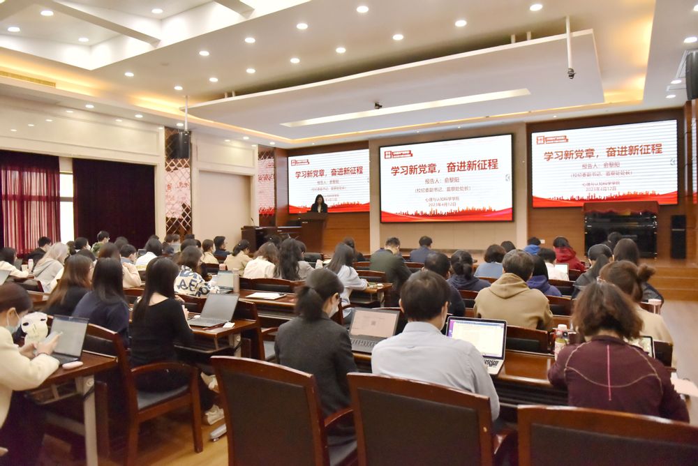 2023年4月12日下午13点, 为深入学习中国共产党章程,进一步推进学习贯彻党的二十大精神走深走实,永利yl23411公司党委邀请校纪委副书记、监察处处长俞黎阳作《学习新党章,奋进新征程》专题辅导报告。公司教工党员、员工党支部支委、员工入党积极分子参加现场学习,报告会由公司党委书记方媛主持。