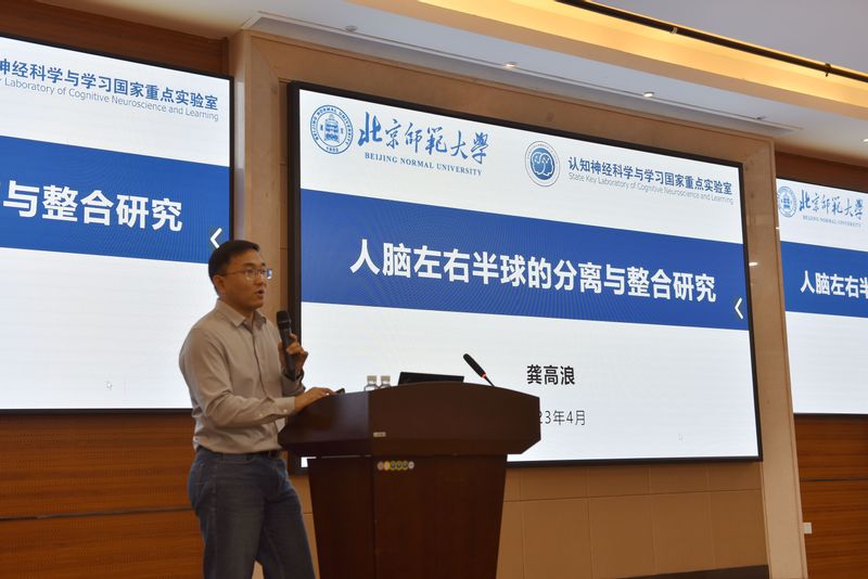2023年4月27日下午,北京师范大学认知神经科学与学习国家重点实验室龚高浪教授应邀,在俊秀楼223报告厅为师生们作了题为“人脑左右半球的分离与整合研究”的学术报告。蔡清教授、黄楚中副教授等青年老师以及研究生共60余人参加了报告会。报告会由公司紫江青年学者尹大志研究员主持。