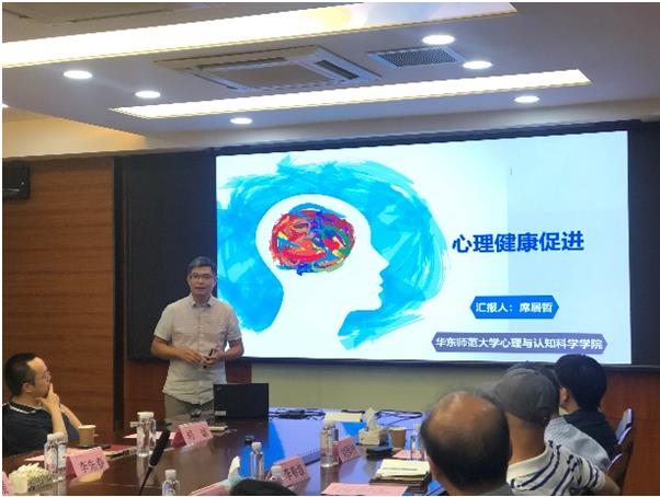 席居哲围绕“心理健康促进”主题进行汇报,他对研究团队的人员构成、研究主题的总体目标、研究技术进路、工作基础、平台准备以及未来计划作出了详细介绍。