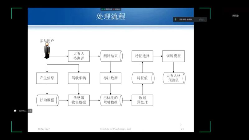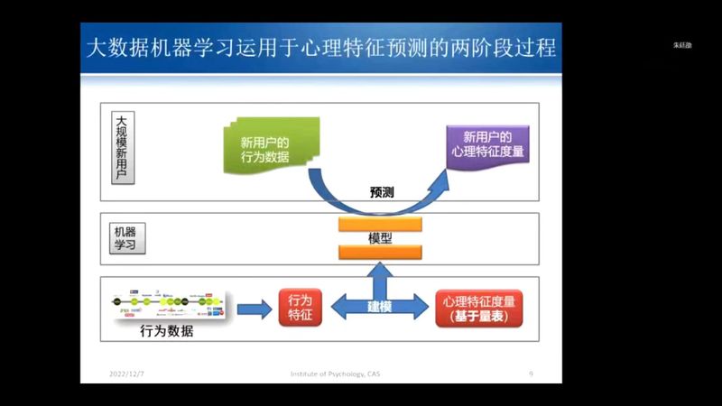2022年12月7日上午,公司邀请中国科公司心理研究所朱廷劭研究员,通过线上方式,为师生作题为“大数据与人工智能助力心理学研究与应用”的学术报告。崔丽娟教授、王彦教授、杨莹副教授、张亚副教授以及40余位研究生参加报告会。报告会由马伟军副教授主持。