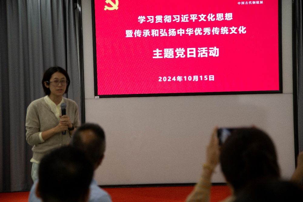 在主题党日活动中,同普路研究生公寓12号楼社区教师楼长、永利yl23411兼职辅导员丁玉蓉围绕展览内容分享了铜镜在中华文化中的地位和意义,以及它们所体现的美学价值和古代智慧,尤其是“以铜为鉴”的古人智慧对日常工作的启发。同普路12号楼员工楼长、永利yl2341124级认知神经科学专业博士生何丹妮则结合自身科研,谈到了本次展览对开展学术研究的启发。