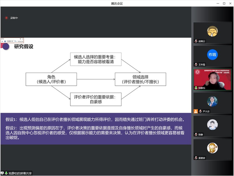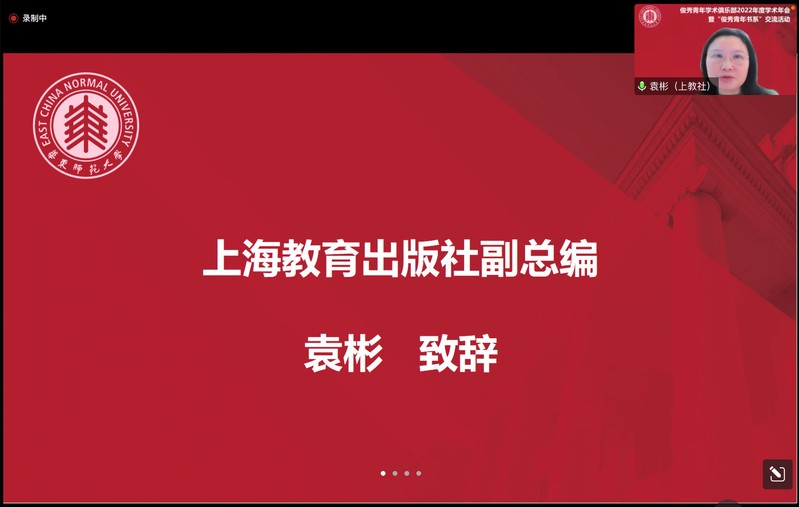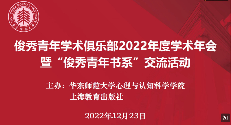12月23日,永利yl23411俊秀青年学术俱乐部2022年度学术年会暨“俊秀青年书系”交流活动在线上顺利举办。本次活动由永利yl23411与上海教育出版社联合主办。上海教育出版社副总编袁彬,教育与心理出版中心主任谢冬华、副主任董洪,营销部主任朱丹瑾,编辑金亚静、王祚瑕、陆天资、廖宏艳,《文汇报》首席记者许暘,《解放日报》首席记者施晨露,永利yl23411副经理郝宁等出席会议。永利yl23411教授陆静怡,紫江青年学者刘帅,副教授李世佳、姚琦、胡杨、陈中廷、陈曦,明园晨晖学者梁一鸣、周晗昱、郭家俊等人作学术报告,共60余名师生参会。报告会由紫江青年学者尹大志和陆静怡教授主持。