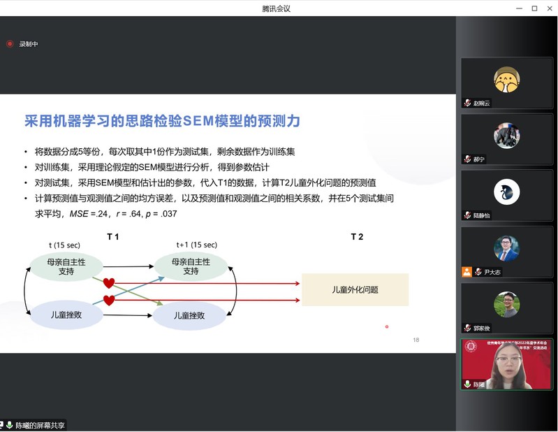 陈曦副教授报告了亲子互动动态模式对儿童社会适应的预测作用,考察了101对母子在挑战性拼图任务中的互动模式对6个月后儿童社会适应的预测作用。在此基础上,采用深度学习模型,进一步提高预测准确性,并通过对模型权重进行可视化分析,进一步探索亲子互动中对儿童社会适应具有较高预测力的动态模式。